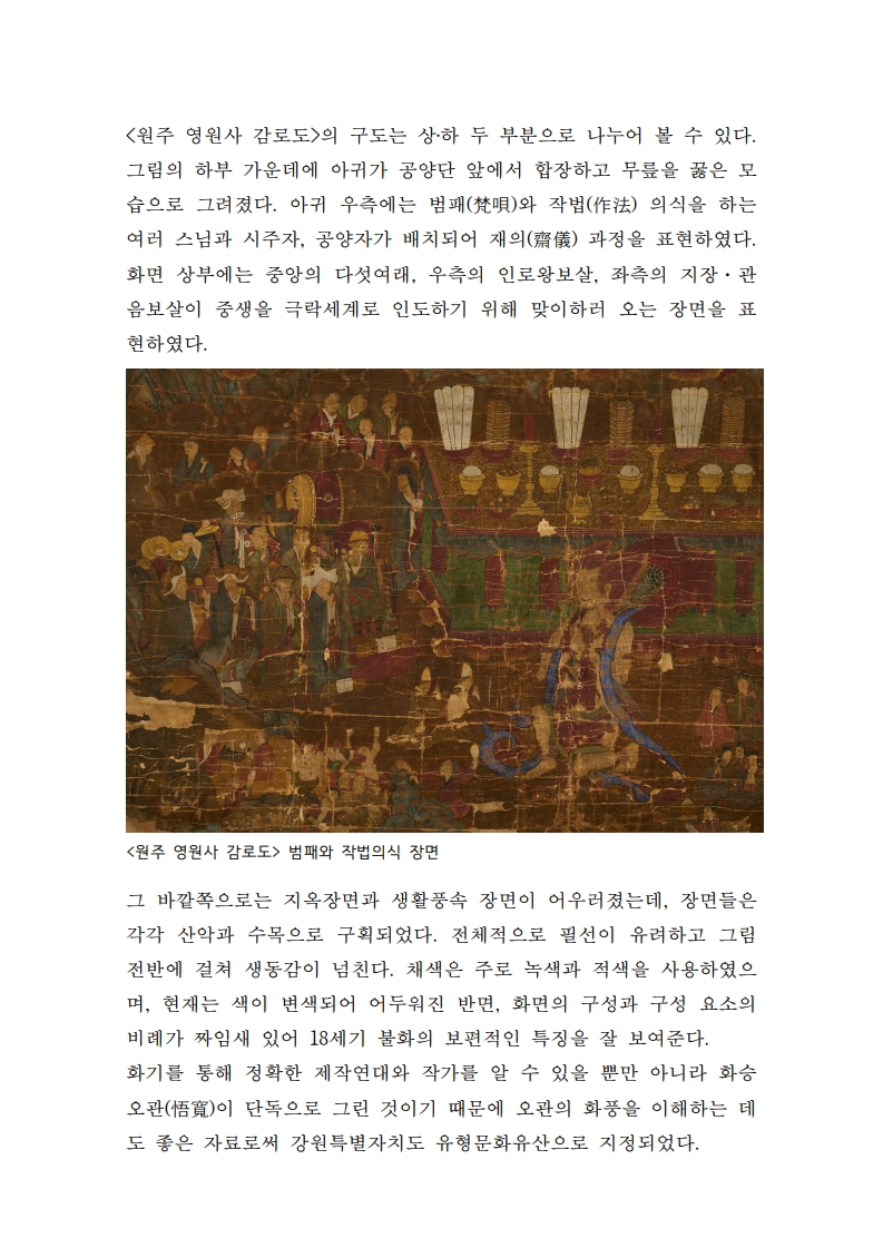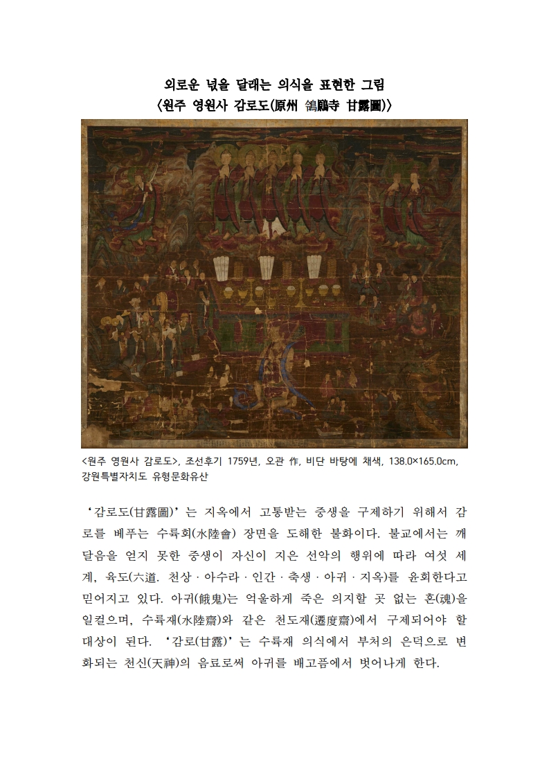 외로운 넋을 달래는 의식을 표현한 그림<원주 영원사 감로도)>