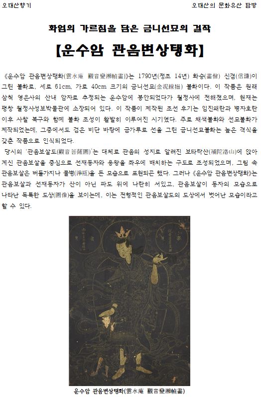 화엄의 가르침을 담은 금니선묘의 걸작, <운수암 관음변상탱화>